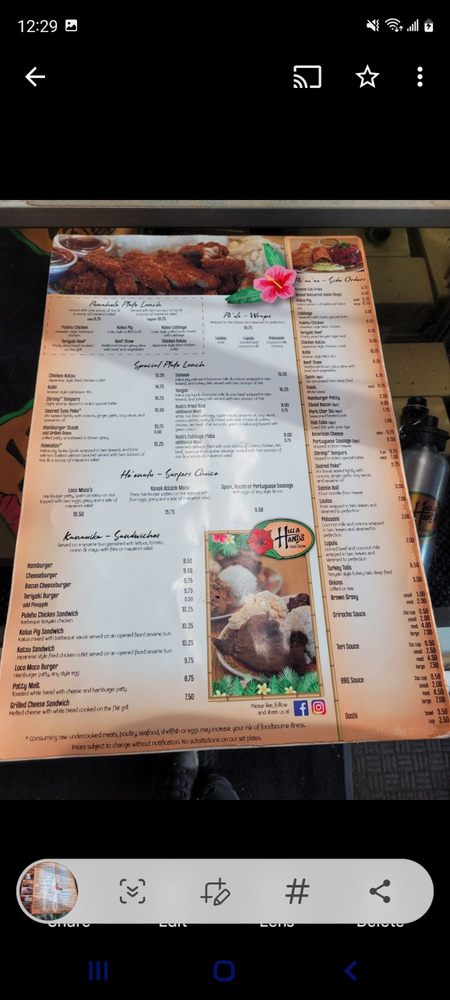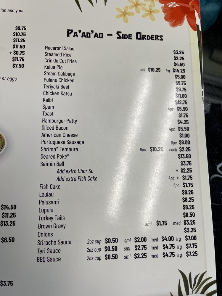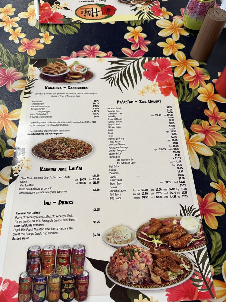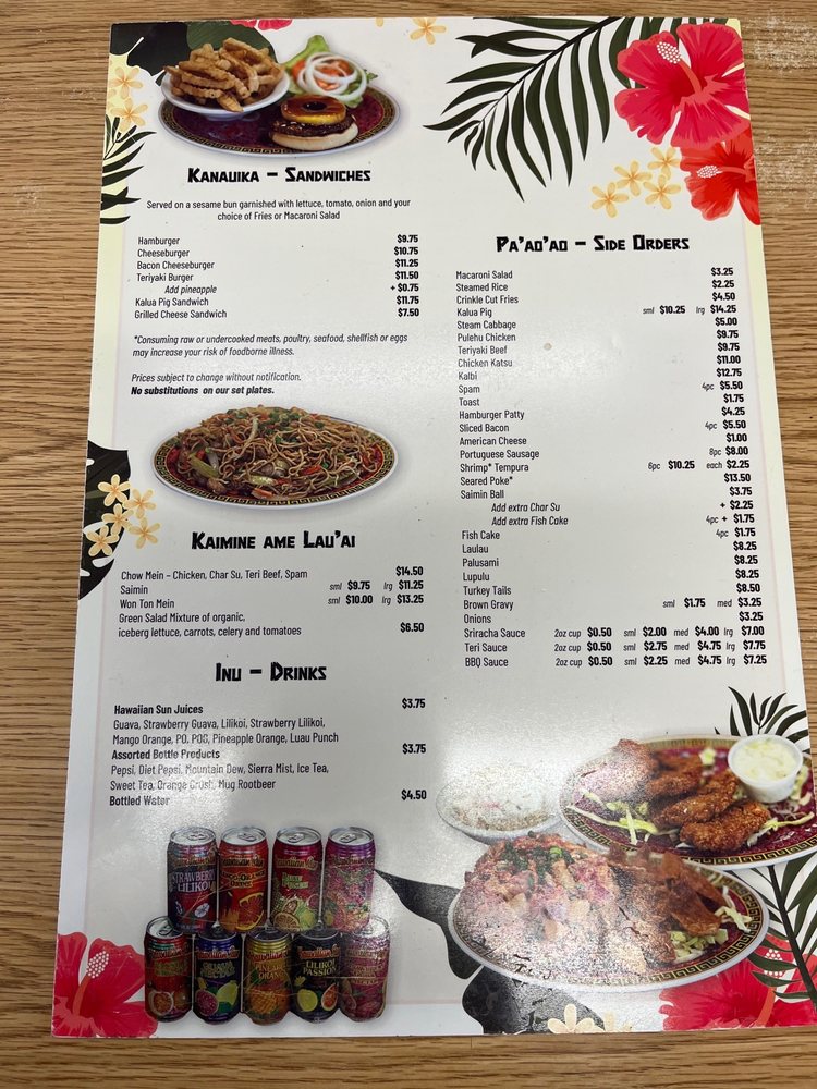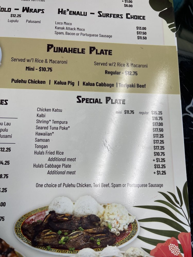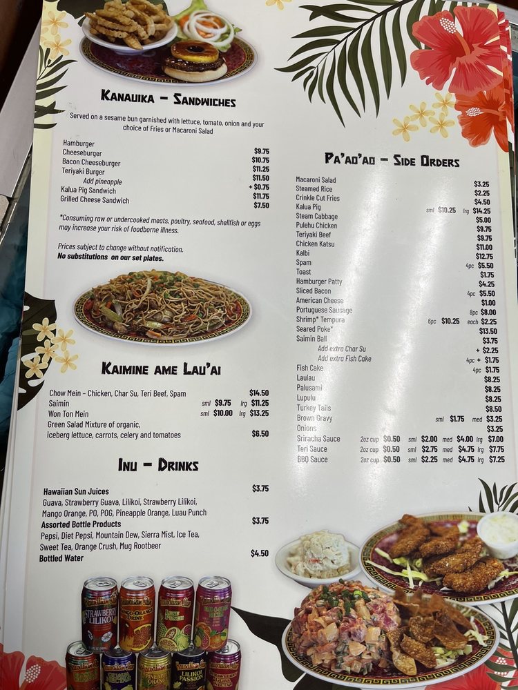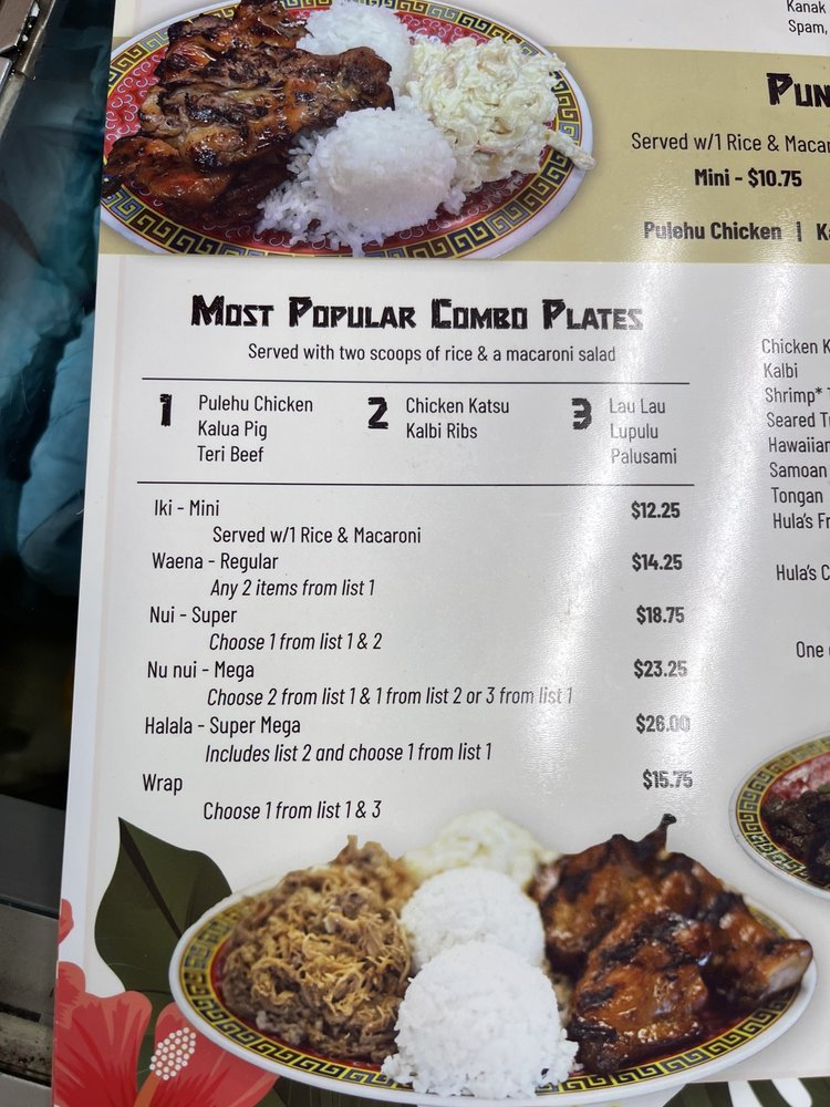 - Wraps: For a taste of Hawaii, try the Laulau or indulge in the rich Palusami, both priced at $10.75.